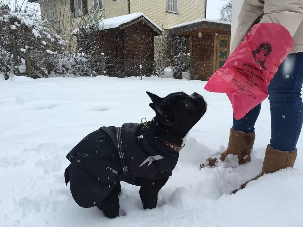 C.V.: Ich nutze Plastiksäcke, welche ich entweder in einem Petshop kaufe (in einer Rolle) oder ich beziehe diese an verschiedenen gratis Halterungen aus der Öffentlichkeit (ROBIDOG/Belloo).