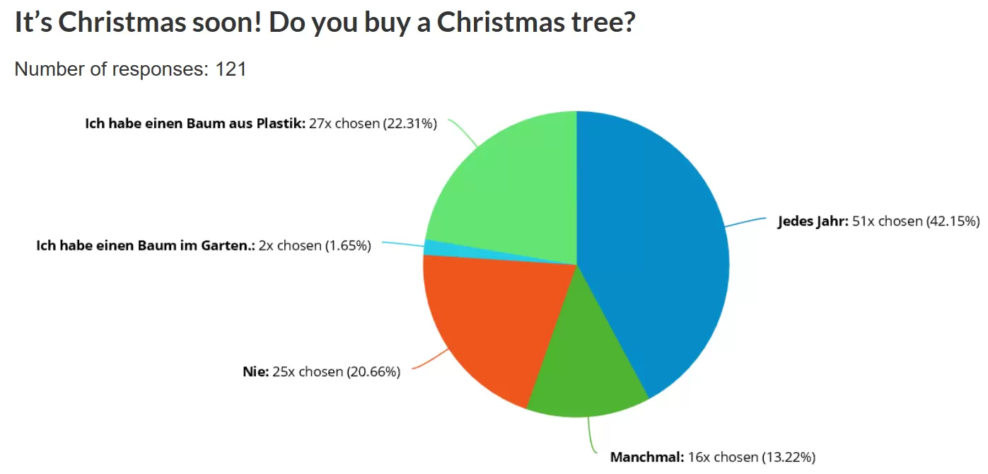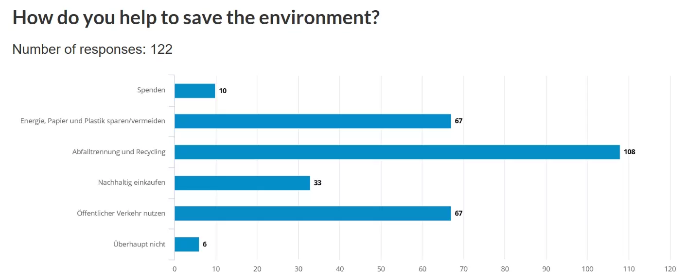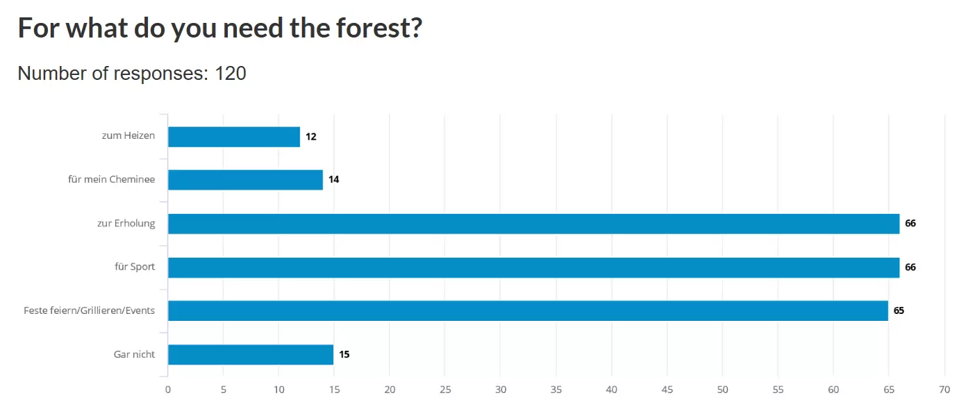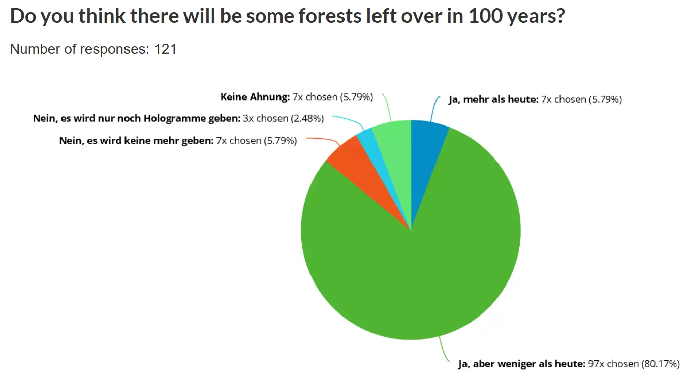 We are quite satisfied with our project. We were able to interview a very interesting forest owner who has a huge knowledge about forests. Our survey had over 120 participants and reveals the opinion of different people regarding age and nationality (collaboration with Belgium). Further, from the online research, we had a lot of information from organisations like Greenpeace and WWF. During our project, we could gain new knowledge and also improve our English, because the task was bilingual. This project was also a challenge for us to work with different media and get in touch with different people. Furthermore, because of the project, we are now more aware of the importance to look after our nature and especially our forests. Our forests and trees contribute a lot to our life quality and are very important for our health.