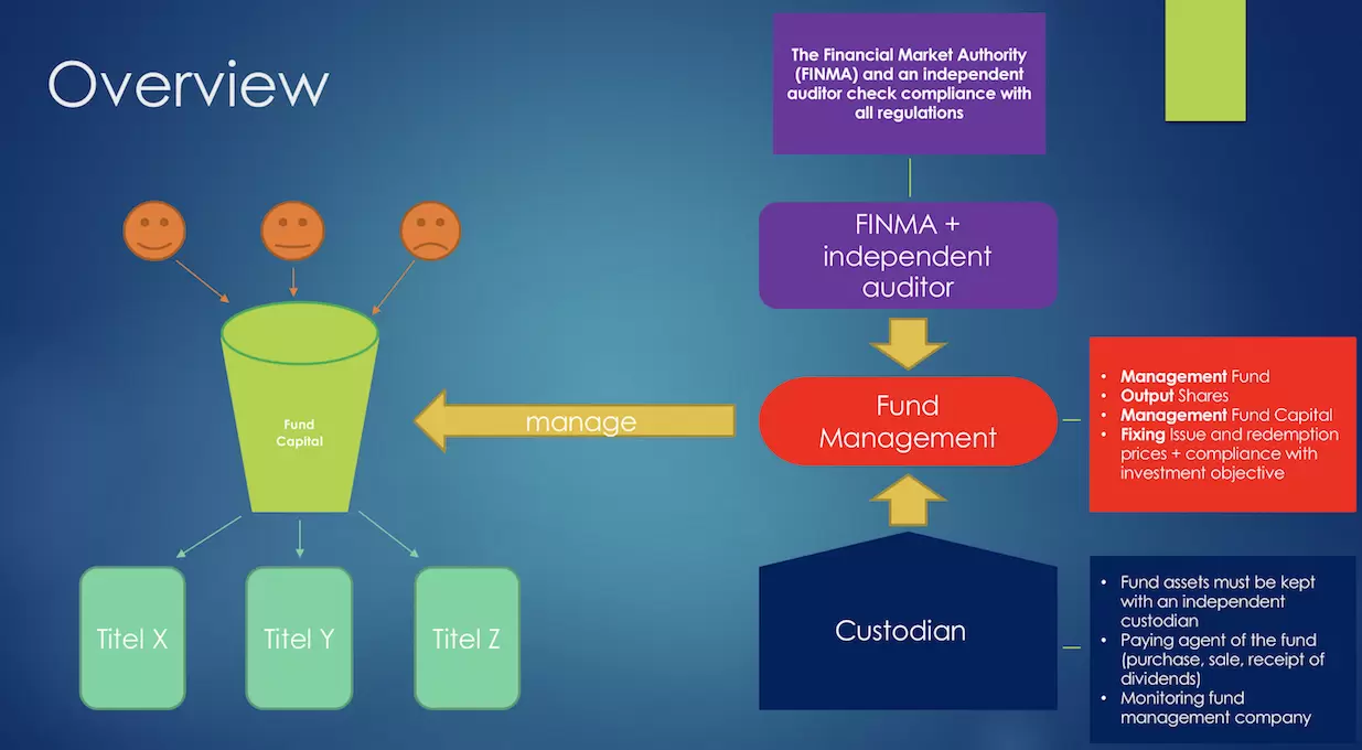 The product I talk about is a Fund. May you heard about it, it is really popular on the financial market. In the following picture you will see how a fund is structured.