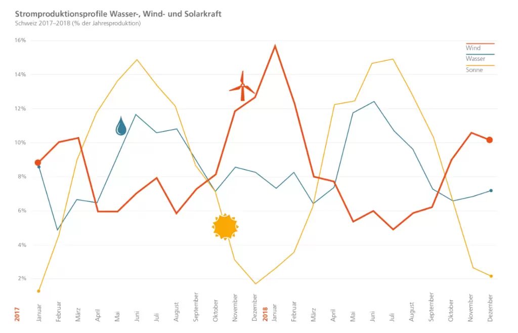 In Switzerland, wind turbines are particularly interesting during the winter months, when both hydro and solar energy resources are low, but electricity consumption is high. This aspect could be emphasized as part of the broader context of seasonal energy challenges.